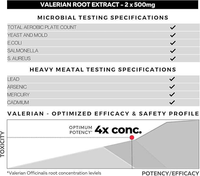 - Optimized Purity and Clinically Studied – Our Valerian supplement is delivered at optimized std. purity of 4x extract that is clinically researched for efficacy and toxicity at that optimized purity.