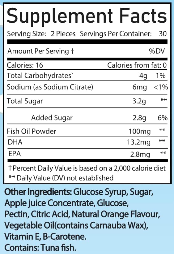 - Natural Mood Booster: Omega-3 fatty acids are known to support a positive mood and emotional well-being. Our gummies help balance your mood and promote a sense of calm and happiness. Say goodbye to the blues and embrace a more positive outlook on life.