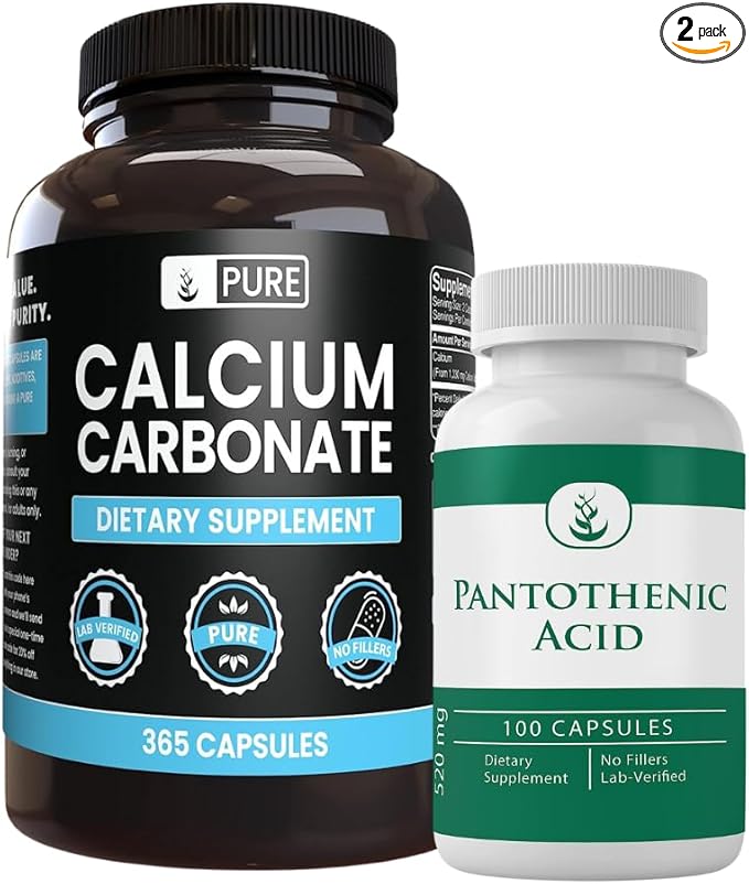 Pure Original Ingredients Calcium Carbonate and Pantothenic Acid Bundle, Various Amounts, Pure, Lab Verified