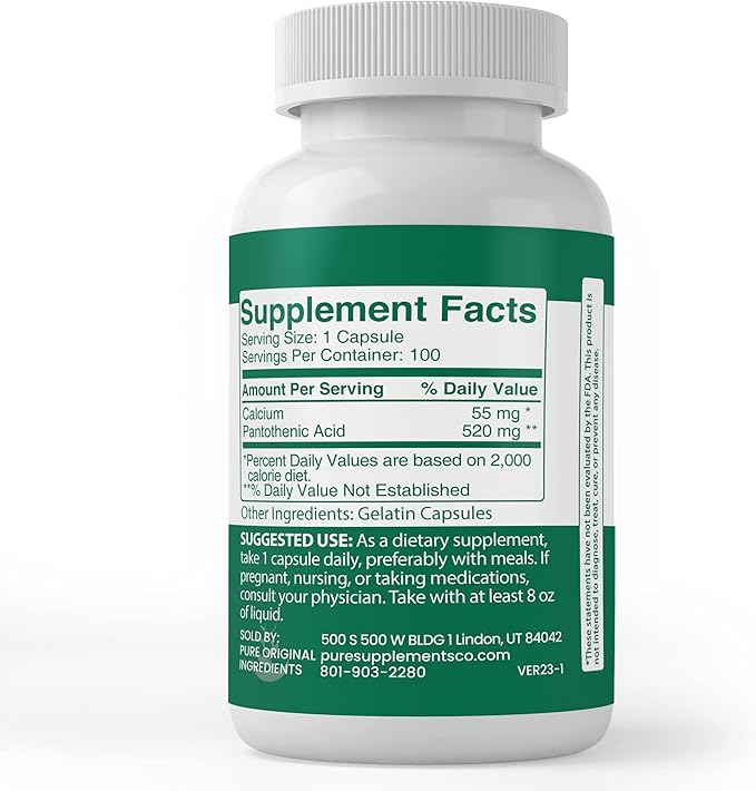 - Pantothenic Acid (100 Capsules) is a natural source of Vitamin B5 & Calcium, 100 day supply