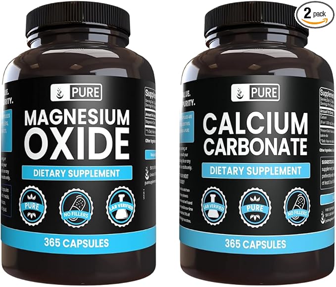 Pure Original Ingredients Calcium Carbonate and Magnesium Oxide Bundle, 365 Capsules Each, No Fillers, Alwasy Pure