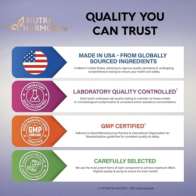 - Quality Matters — NUTRAHARMONY ltheanine vitamin is an excellent and effortless choice for improving your health. If you want to share your experience or have questions about l- theanine, message us. Our support team works 24/7. Maintain your health anytime, anywhere with a ltheanine supplement!