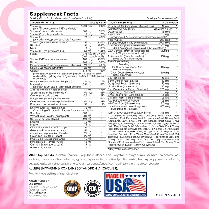 - Women's Health Support: Specifically formulated for women, this multivitamin packet promotes energy, metabolism, immune system, and women's health with a blend of 82 high-quality ingredients.