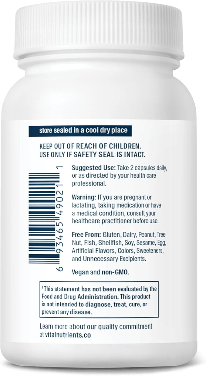 - Quality You Can Rely on: Vital Nutrients supplements are manufactured in our allergen-free, NSF-certified Middletown, CT facility. Our rigorous quality assurance program includes third-party independent laboratory testing of raw ingredients and finished products for purity and potency to ensure what’s on the label matches what’s in the bottle.