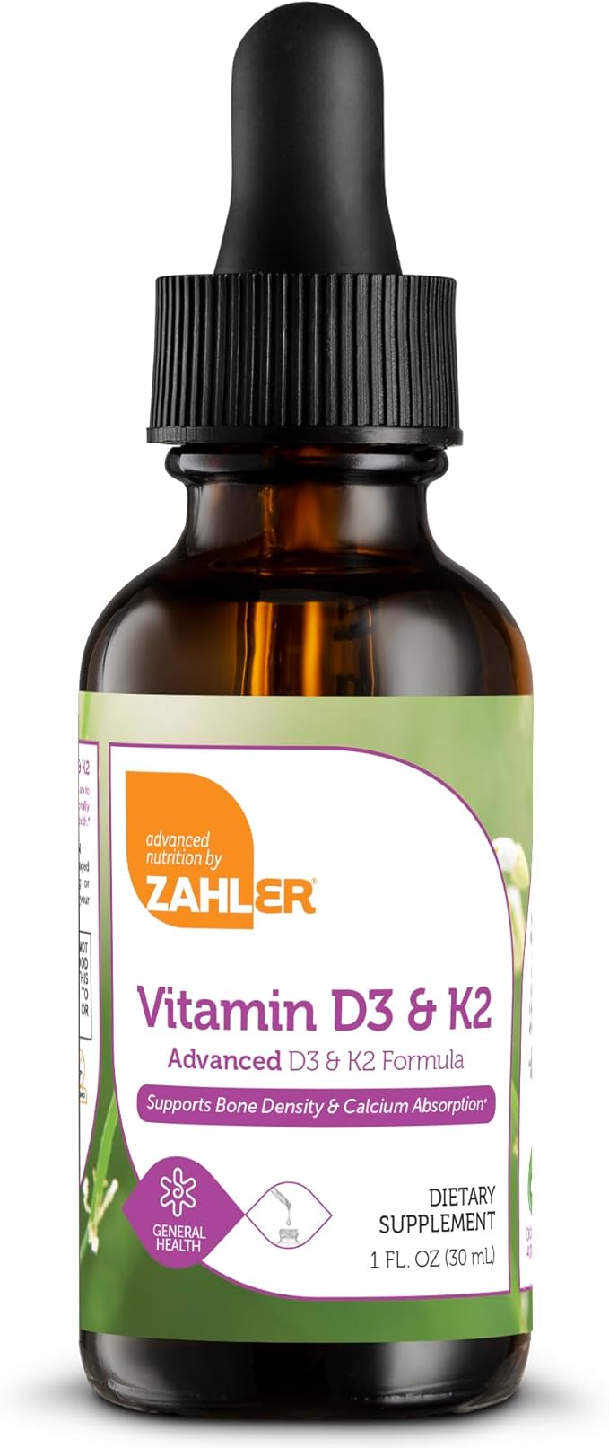 Zahler Vitamin D3 K2 Drops, Liquid D3 with K2, 1000IU of Vitamin D and 1000mcg of K2 per Serving, Supports Bone Density and Calcium Absoprtion, 1Fl Oz.