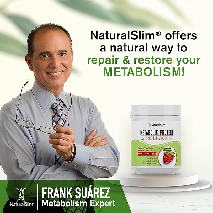 NaturalSlim Metabolic Protein Powder with Collagen Strawberry - Hydrolyzed Collagen Protein Powder for Hair, Skin, Bone, Joint, and Metabolism - Low Carb Meal Replacement Shake Mix - 17.6 oz