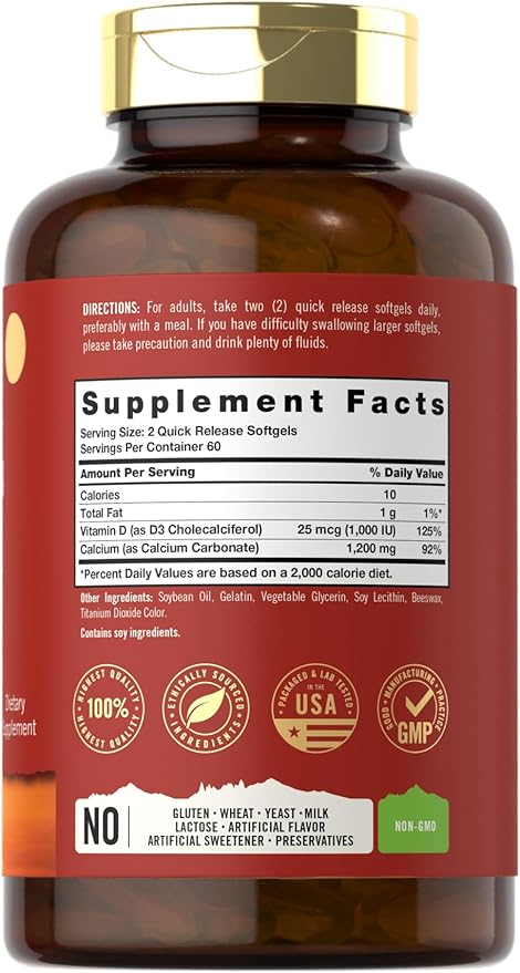 - CALCIUM + D3: Add this duo of nutrients to your daily vitamin routine with quick release softgels