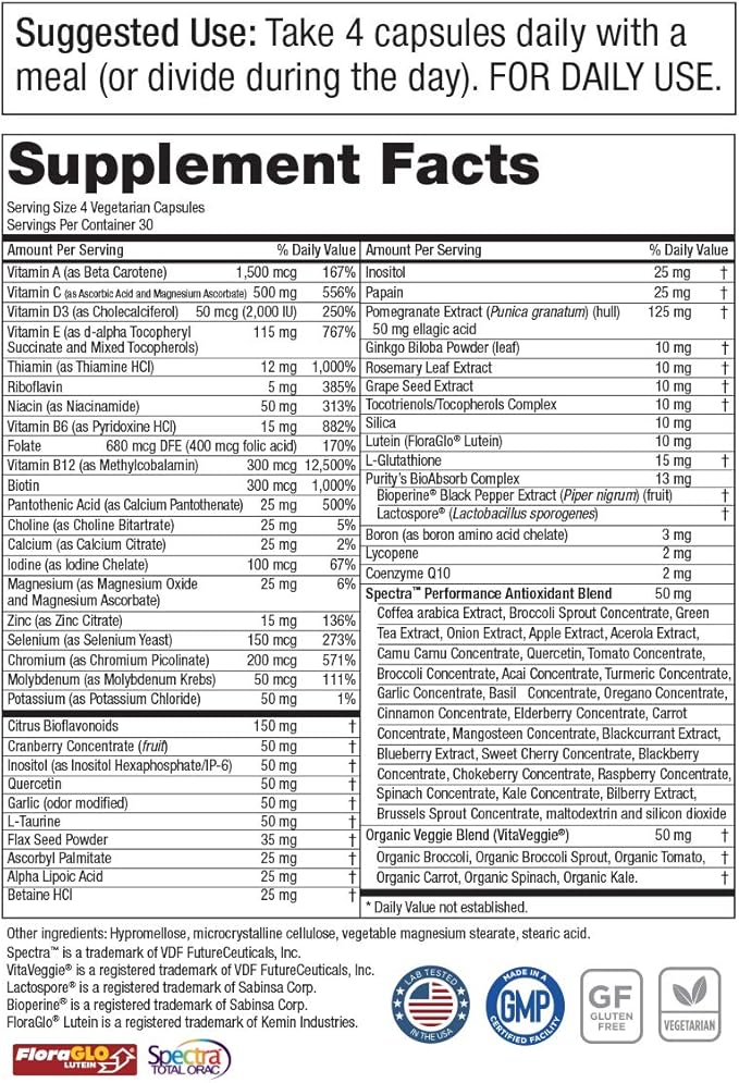 - PERFECT MULTI GREENS — Phytonutrients with 3600+ ORAC Antioxidant Power - New Dietary guidelines now recommend we consume 7-9 servings of fruits and vegetables daily to obtain the full spectrum of phytonutrients. Perfect Multi Super Greens provides the antioxidant equivalent of 3-5 servings of fruits and vegetables (fruits and vegetables vary on ORAC value), taking care of up to half or more of your daily need.