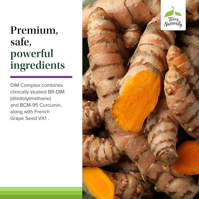 Terry Naturally DIM Complex - Dietary Supplement with BCM-95 Curcumin - Supplement to Support Healthy Hormone Balance, Liver Health & Menopause Symptom Relief - 30 Capsules, 2 Pack (60 Capsules)