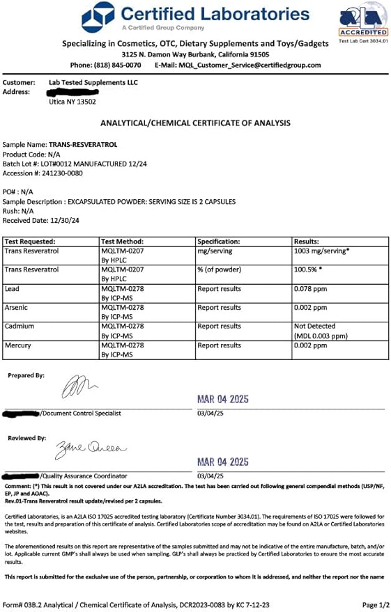 - 3rd Party COA's provided: We provide 3rd Party Certificates of Analysis with every lot# of every supplement we sell so you know exactly what you are purchasing. The only way to know what you are buying is by viewing 3rd Party test results of the product you are buying.