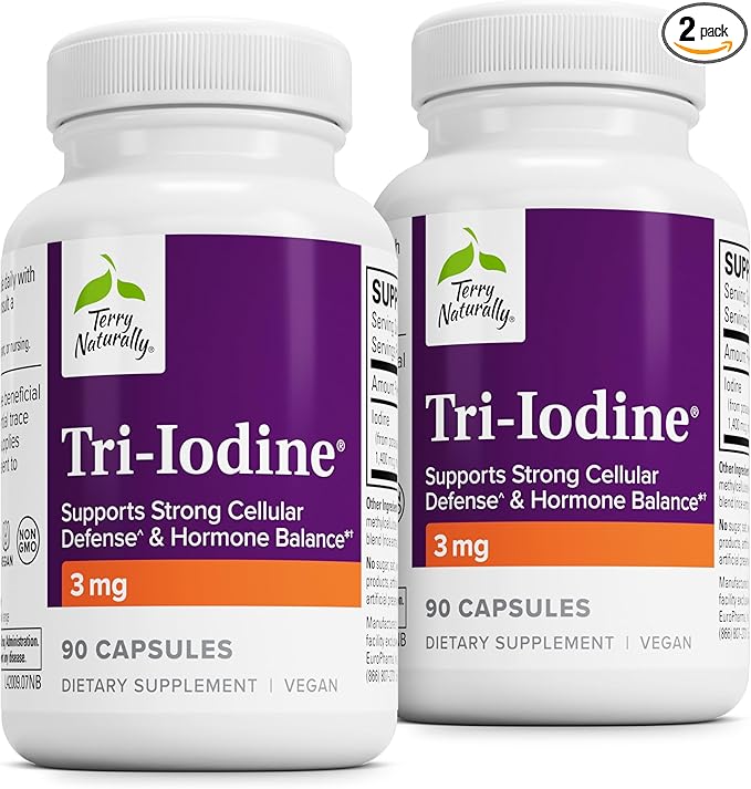 Terry Naturally Tri-Iodine - Dietary Supplement for Breast & Prostate Health Support - Healthy Thyroid Function Supplement Aid - 3 mg, 90 Capsules, 2 Pack
