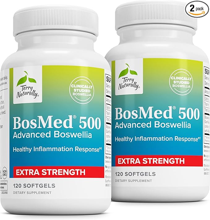 Terry Naturally BosMed 500 Extra Strength - Boswellia Serrata Extract Supplement - Supplement for Healthy Lung Support - Herbal Supplement Formula with High Levels of AKBA - 120 Softgels (Pack of 2)