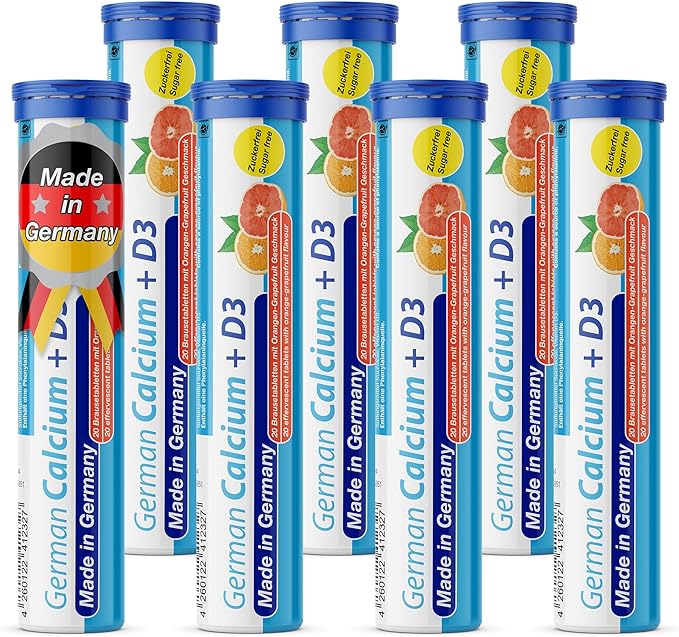 German Calcium + Vitamin D Drink Effervescent Tablets 140 Servings Orange-Grapefruit Flavour - 500 mg Calcium, 2,5 μg Vitamin D3 - T&D Pharma – Made in Germany