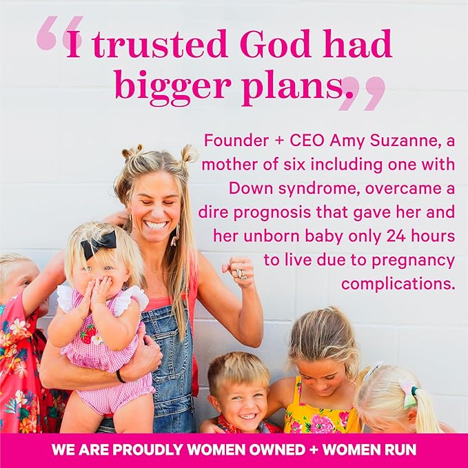 - We are Women-Owned and Women-Run: Our founder and CEO, Amy Suzanne, is a mom of 6 children and knows how important it is to give new moms products you can trust. Over 80% of our employees are women, and we create clean, trusted, and effective products for every stage of a woman's journey. We are on a mission to provide women with hope and positively impact everyone who comes in contact with Pink Stork.