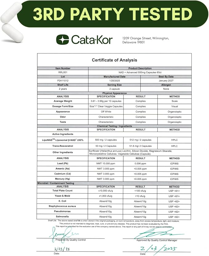 - TESTED IN THE USA: Our NAD, Resveratrol supplement is third-party tested in the USA to ensure its purity and effectiveness. Certificate available upon request. Get back to feeling your best with NAD+ supplement booster today.