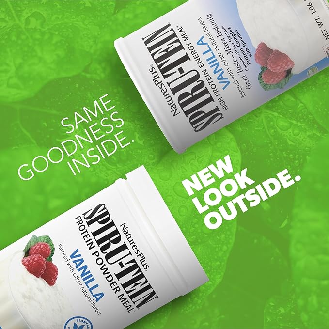 Natures Plus SPIRU-TEIN, Vanilla - 1.06 lbs, Pack of 2 - Plant-Based Protein Powder - Vegetarian, Gluten Free - 32 Total Servings