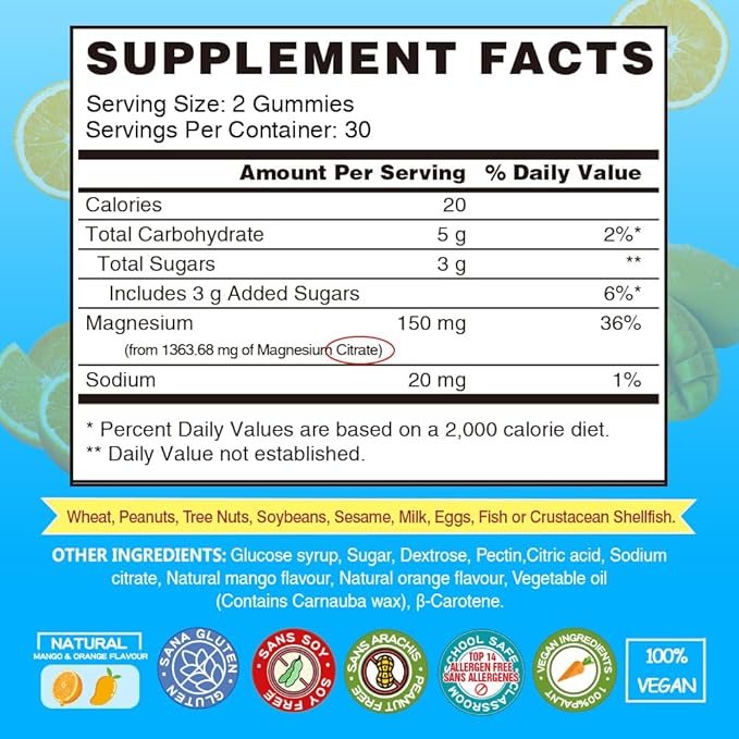 - Ⓜ️【Vegan Magnesium Gummies 】- It's not what you take, it's what you absorb. Don't let your options make you toss and turn—promote restful sleep & a calm mood with these delicious Magnesium Gummies. With Vegepower Magnesium Citrate Gummies, you can be confident that your body is absorbing the magnesium you take. These delicious, mango-flavoured magnesium supplements are the best-tasting magnesium gummies for adults and kids!