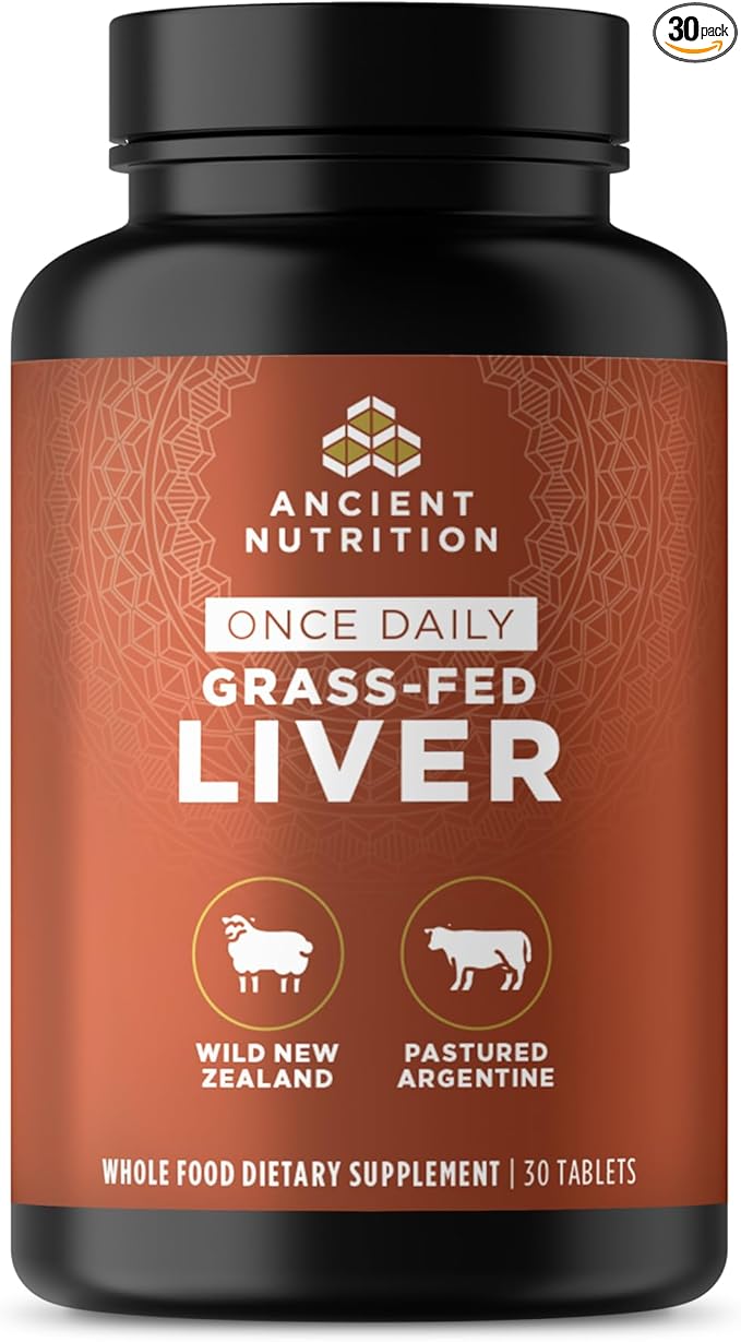Ancient Nutrition Organ Supplements, Once Daily Grass-Fed and Wild Organ Complex Capsules, Beef & Lamb Liver, Supports Healthy Blood, Gut, and Liver, 30 Ct