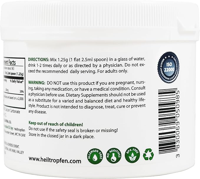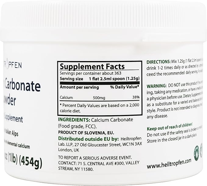 Calcium Carbonate Powder | 1 Pound - 454 g | Dietary Supplement | Highest Purity Limestone | CaCO3 | Heiltropfen®