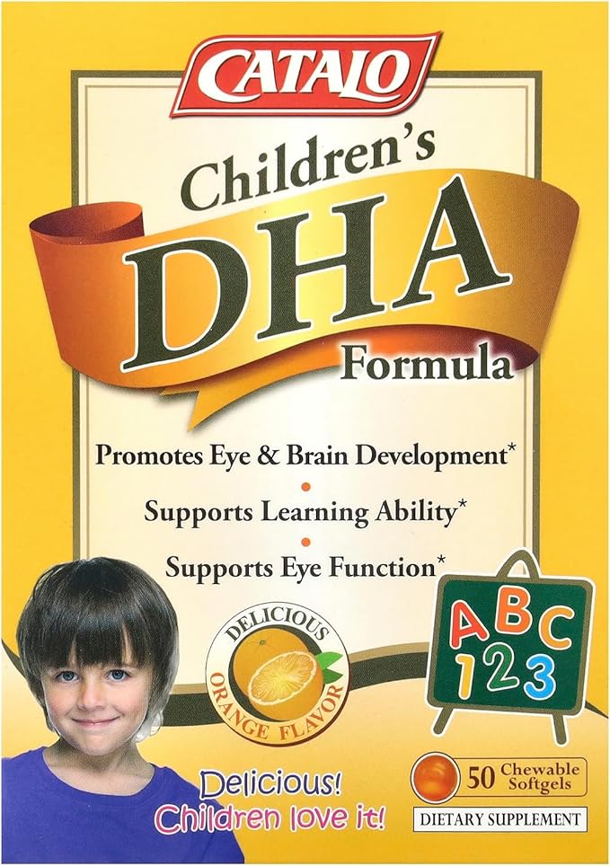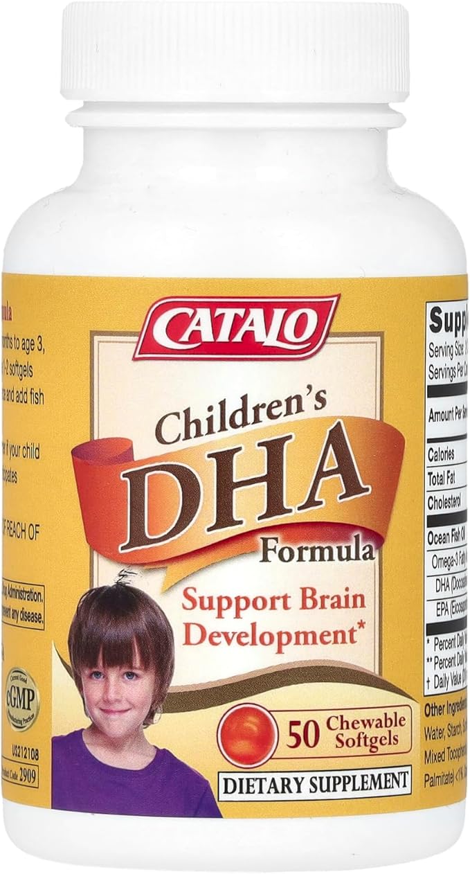 CATALO Children's DHA Formula Fish Oil Supplements, Chewable Softgels, 200mg DHA per Serving, Omega-3, Natural Orange Flavor for Kids, for Brain Function & Eye Development, Easy to Take, 50 Softgels