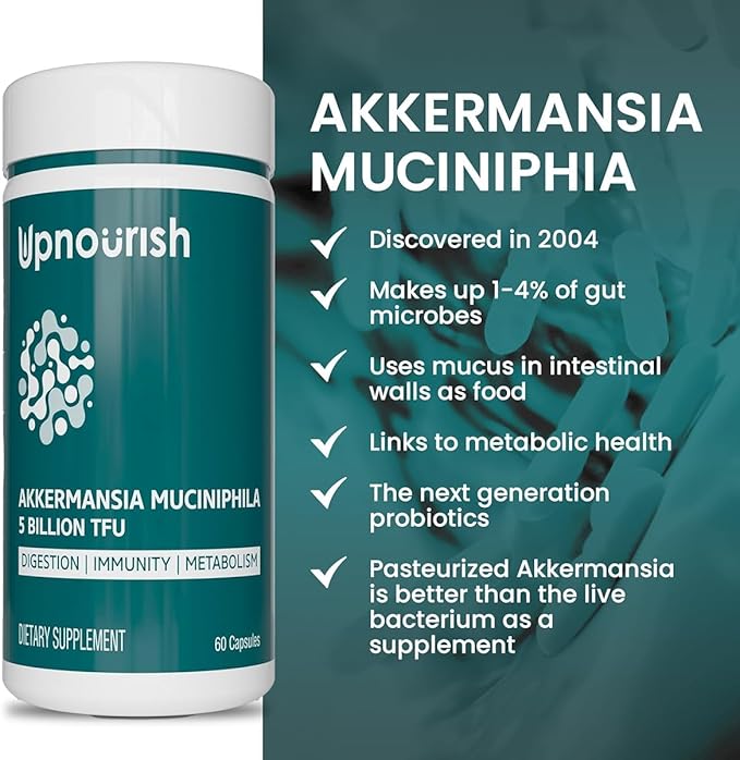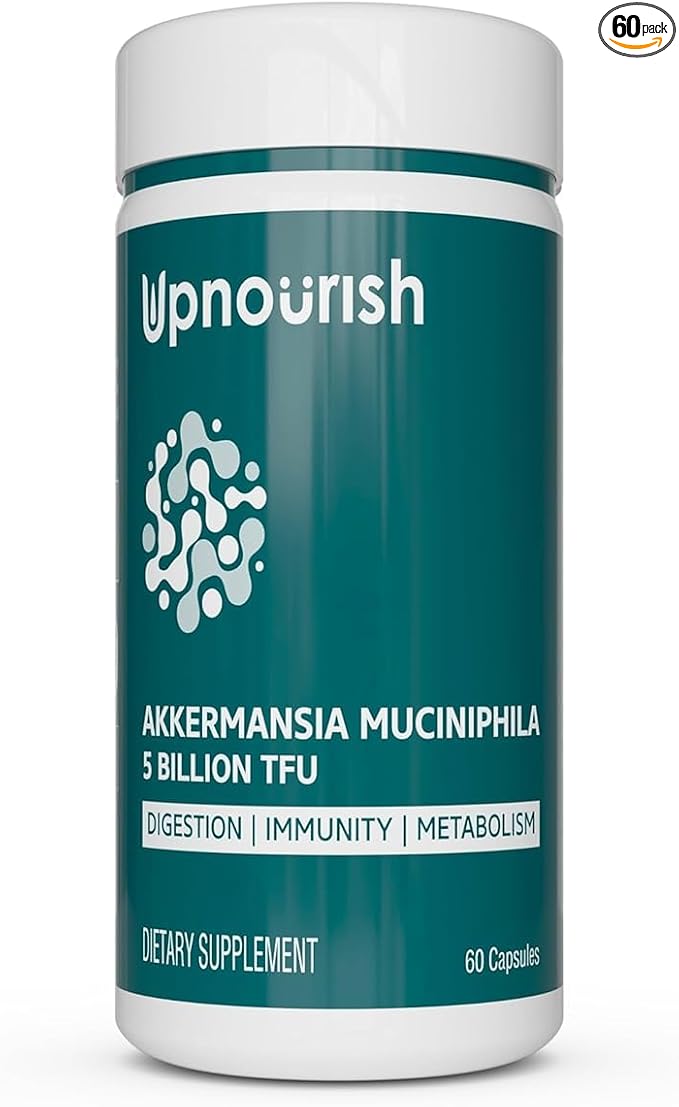 UpNourish Probiotics for GLP-1 Support, 5 Billion TFU Akkermansia Muciniphila for Digestive Health, Leaky Gut, Immunity and Metabolic Health, Prebiotics and Probiotics for Women and Men, 60 Capsules