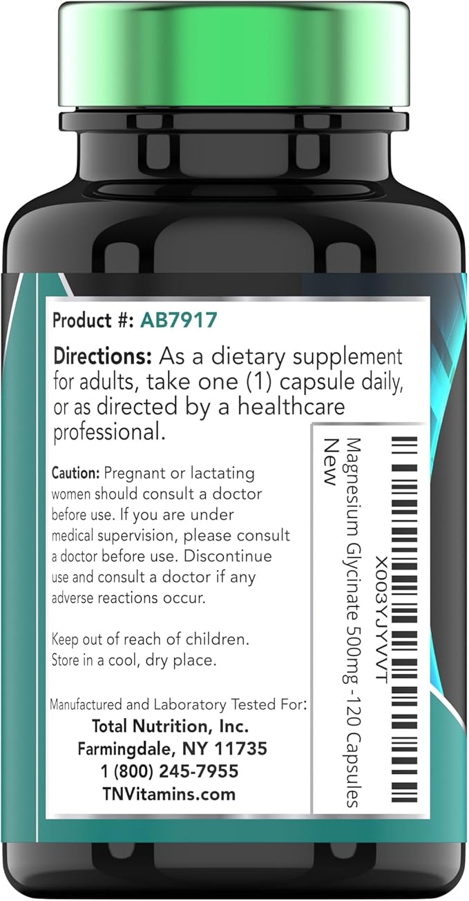 - ✔️ Each One Capsule Serving Provides 500 MG of Magnesium Glycinate Per Serving! 120 Capsules Per Bottle, and One (1) Capsule Per Serving Make Each Bottle of TNVitamins Magnesium Glycinate 500mg a 4 Month Supply!