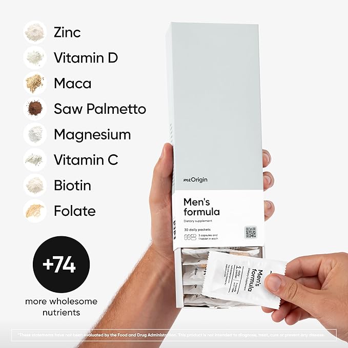 - FULL-SPECTRUM MENS MULTIVITAMIN: The meOrigin vitamins for men are optimized to support and improve men's daily health with 82 wholesome nutrients in total, including Vitamin D, Vitamin B6, Zinc, Maca, Biotin, Magnesium supplement, Thiamin, Saw Palmetto and more in one mens multivitamins pack.*
