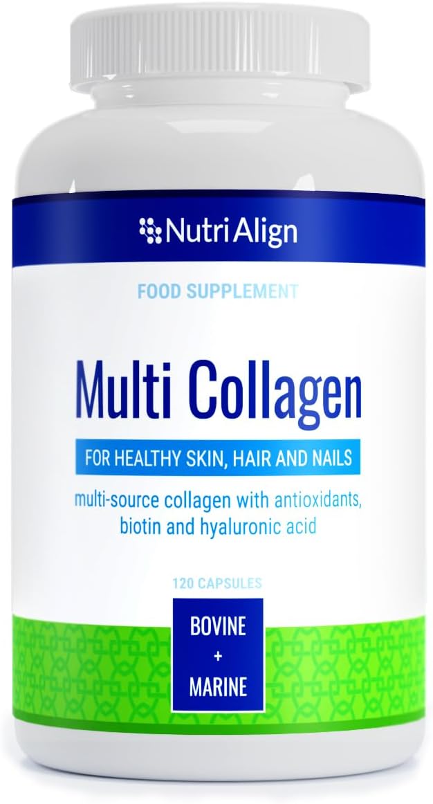 Nutri-Align Multi Collagen | 120 Collagen Peptides Capsules - 600mg Bovine Collagen & 400mg Marine Collagen per Serving | Collagen for Women Hair, Skin & Nails with Vitamins & Amino Acids | Sugar Free