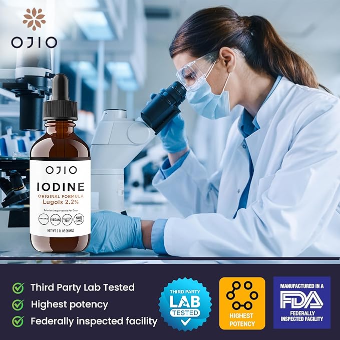 - ✅ SUPERIOR ABSORPTION & MAXIMUM POTENCY - Our liquid formula makes it quicker and easier to absorb than pills. Ojio's Lugol's Iodine Solution is scientifically formulated as a highly concentrated liquid to maximize the amount of iodine your body absorbs and utilizes. It can be taken orally or applied externally to the skin, allowing for fast absorption so that you start reaping benefits virtually instantly upon use. Suitable for women, men, and kids.