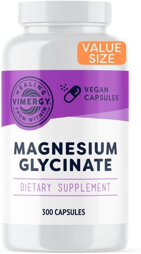 Vimergy Magnesium Glycinate – Stress Support – Chelated to Avoid Tummy Upset*– Promotes Heart Health & Energy*– Kosher, Vegan Gluten-Free – 300 Caps