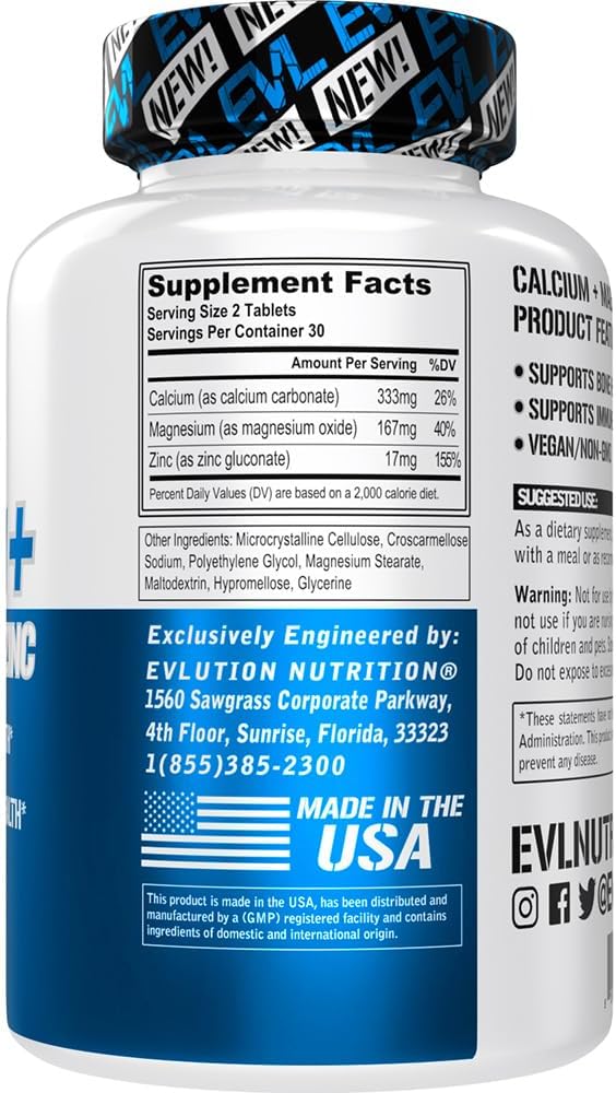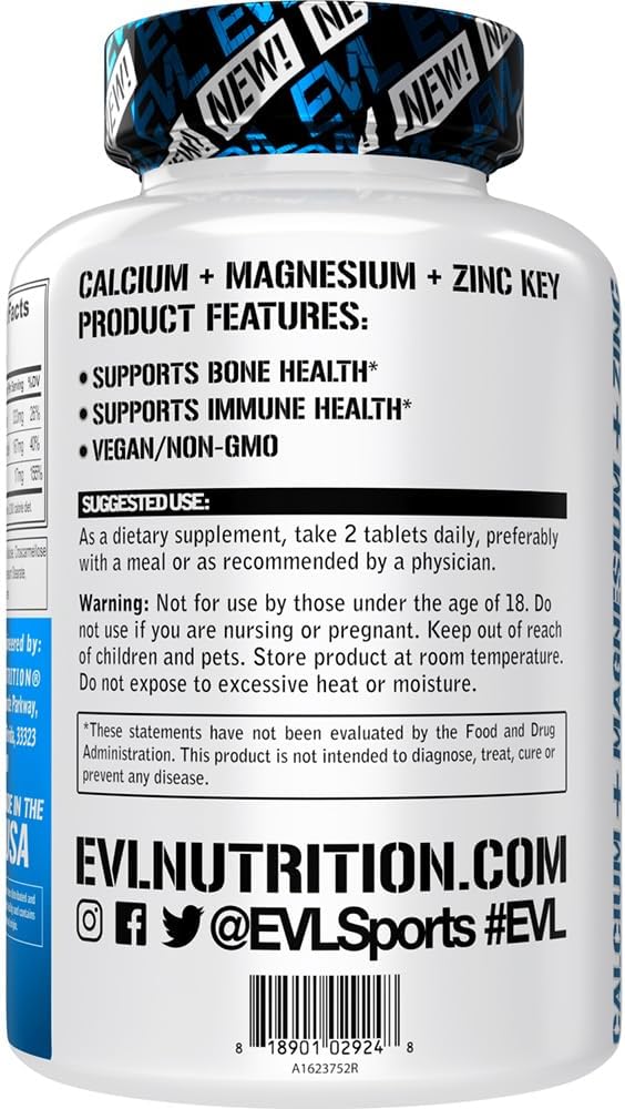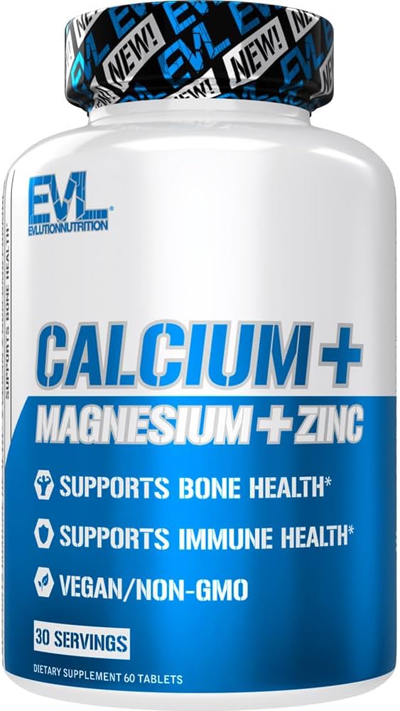 Evlution Nutrition Calcium + Magnesium + Zinc - Bone + Muscle Health Support - Immune + Sleep Supplement - Vegan + Non-GMO - 30 Servings