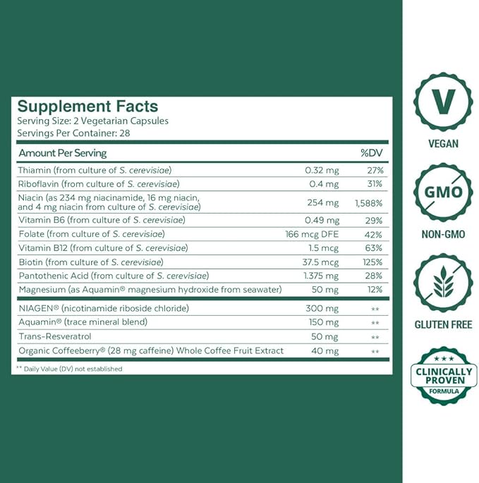 Qualia NAD+ Nicotinamide riboside nr Supplement, Can Boost NAD+ Levels up to 50% with: NR (nicotinamide riboside from NIAGEN), Niacin & Niacinamide - Vegan (56 Caps), (1 Month Supply)
