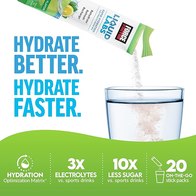 - MADE WITH 3X MORE ELECTROLYTES: Don’t be fooled by hydration packets that are mostly sugar and salt. Liquid Labs hydration packs contain 3x more electrolytes than leading sports drinks, providing you with fast, refreshing, high-quality hydration.