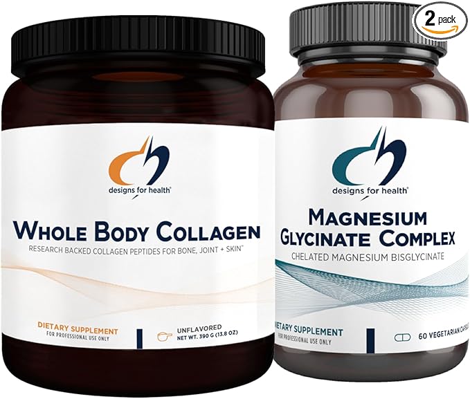 Designs for Health Magnesium Glycinate Complex (60 Capsules) & Whole Body Collagen (30 Servings) Bundle - High Absorption Magnesium with Premium Collagen Powder to Support Bones, Skin & Joints