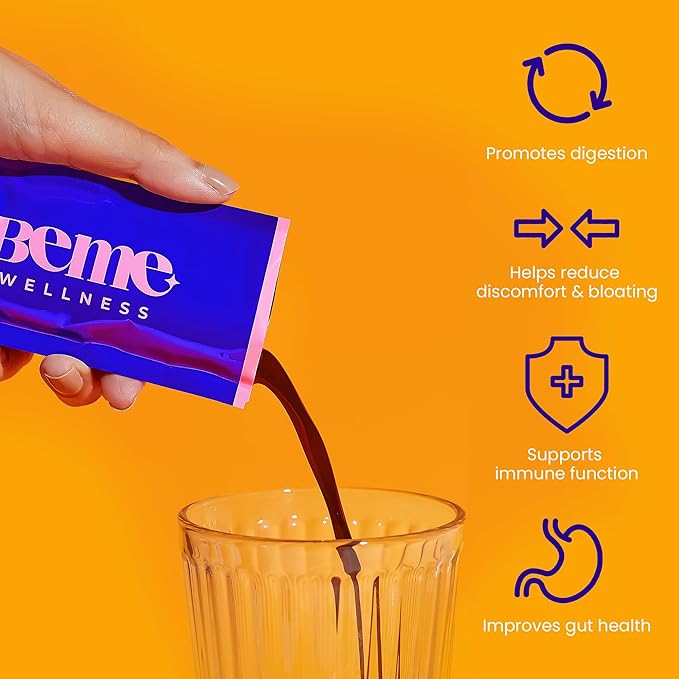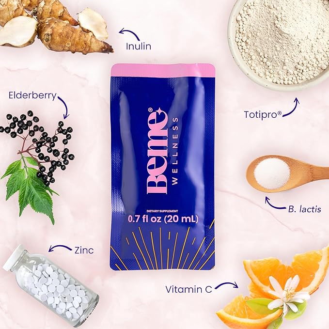 - Benefits of Be Healthy: Each sachet is boosted with Inulin, B. lactis, Totipro, Vitamin C, Zinc, and Elderberry. Inulin contains fiber-rich chicory root to help regulate bowel movements, while B. lactis and Totipro support overall gut health, reducing discomfort and bloating. Vitamin C, Zinc, and Elderberry are essential for supporting immune function.