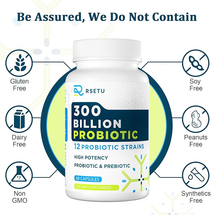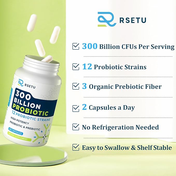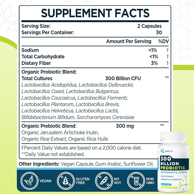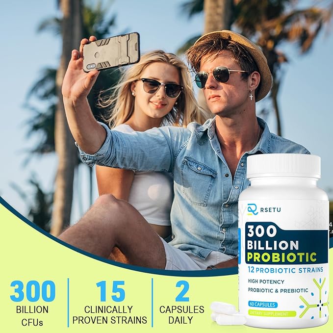 - Highly Potent Probiotic Blend: Contains 12 proven probiotic strains and 3 prebiotics; each capsule delivers 300 billion CFUs; suitable for men and women; supports gut health, digestion, and immunity; recommended 2 capsules daily for comprehensive benefits