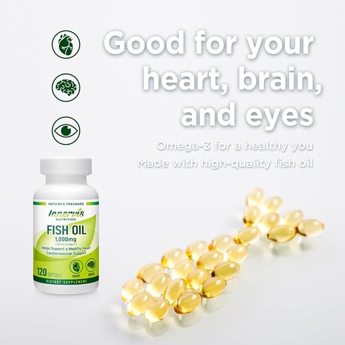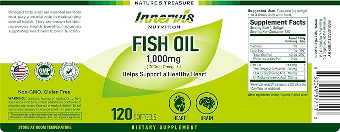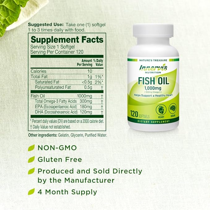 Fish Oil 1000mg Supplement – 120 Softgels Omega-3 Support Heart Brain Eye Health EPA and DHA Non-GMO Gluten Free
