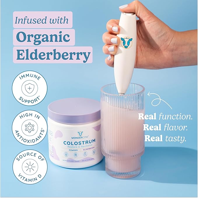 - Whole Colostrum Supplement + Elderberry: Embrace the purity of nature with our 100% whole colostrum powder, untouched and complete as nature intended. Unlike many competitors who remove beneficial fats or introduce additives to "spike IgG's" our product remains unaltered, delivering a full spectrum of essential nutrients. WonderCow Bovine Colostrum offers a natural blend of peptide rich fats, growth factors, essential amino acids, proteins, and immunoglobulins—all vital components for thriving health. We enhance the flavor of our colostrum by infusing it with elderberry, creating a synergistic function that supercharges your immune system.