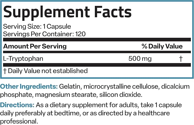 - High Potency Formula: Bronson L-Tryptophan provides 500 MG per capsule for superior support. L-Tryptophan is an essential amino acid that is obtained through diet and supplementation.