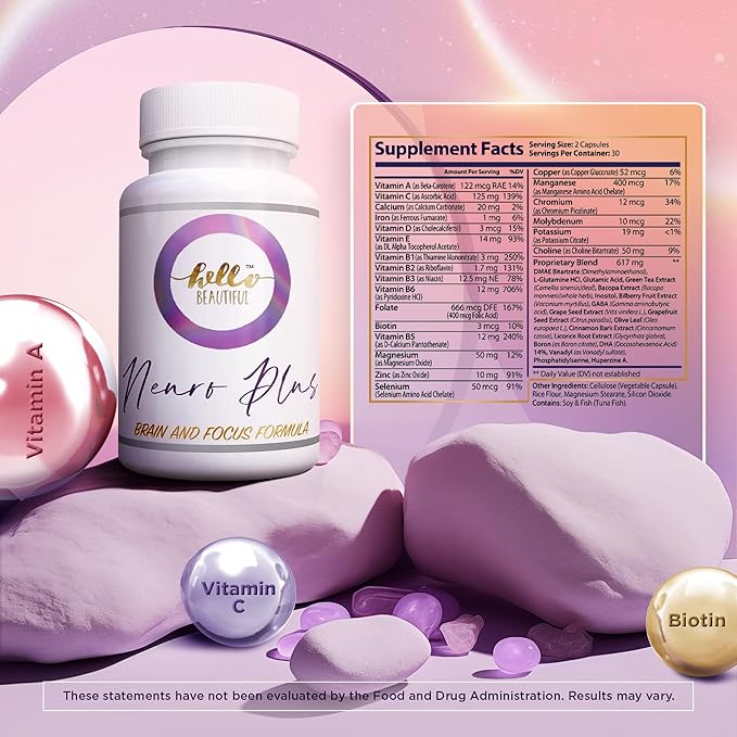 - Hello Beautiful Neuro Plus Brain Focus Capsules are specially formulated to support and enhance cognitive function, promoting better memory recall, mental clarity, and overall brain performance.
