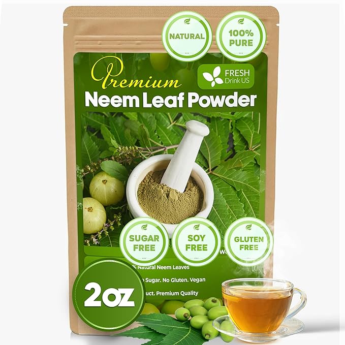 FreshDrinkUS, Premium 2oz Neem Leaf Powder, 100% Natural and Pure from Neem Leaves Dried, for Hair and Skin, No Additives, No Gluten, No Sugar, Vegan