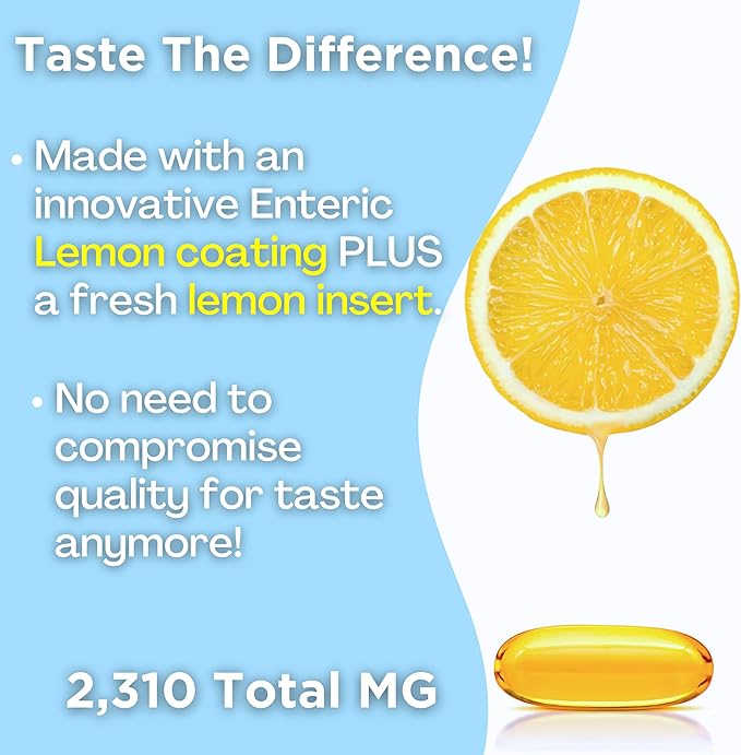 Omega 3 Fish Oil Supplement - High Strength Lemon Scented Fish Oil Pills, 1360mg EPA DHA for Heart, Brain & Immune Support Omega 3 Fatty Acid Supplements - 30 Servings