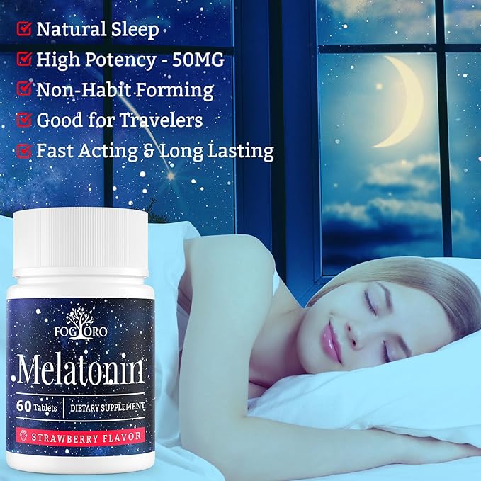 Fogoro Powerful Melatonin -Fall Asleep Faster, Stay Asleep Longer,Easy to Take, 60 Count (Pack of 2)