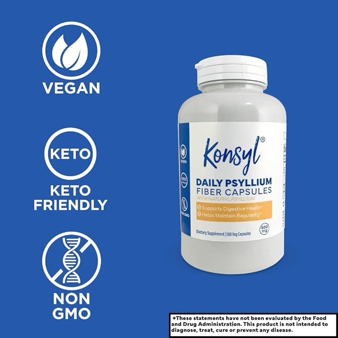 Konsyl Daily Psyllium Fiber Capsules - Contains 1500mg of All-Natural Psyllium Husk Powder per Serving - Supports Digestive Health and Weight Management Goals+ (500 Count (Pack of 1), Unflavored)