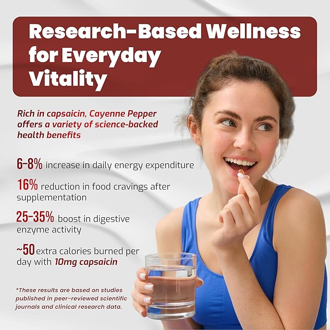 - t️ REMARKABLE POTENCY: Vegatot Cayenne Pepper Supplement features a powerful blend of 9 carefully selected natural ingredients. Additionally, Every capsule contains a concentrated form of herbal powder, ensuring maximum benefit. Our advanced formula simplifies your supplement routine, allowing you to experience the full range of advantages with the ease of taking just one capsule daily.