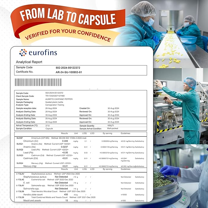- EXCEPTIONAL CONVENIENCE -- This exceptional Aumeto Cayenne Pepper blend is crafted for your holistic well-being, providing an abundant 180-day supply. With 180 capsules per bottle, it ensures sustained benefits and instills confidence in maintaining a consistent wellness regimen. Embrace the convenience and effortlessly integrate this exclusive formula into your daily routine for added ease.