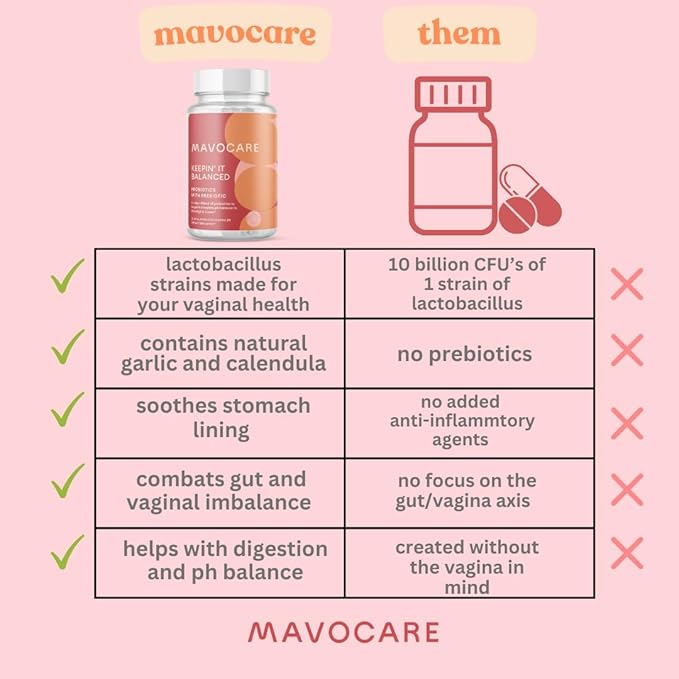MavoCare Probiotic for Women – BV & Yeast Infection Support, pH Balance, Odor Relief, Gut Health – 30ct Vegan Capsules with Prebiotics, Calendula & Garlic for Vaginal Health and Digestion