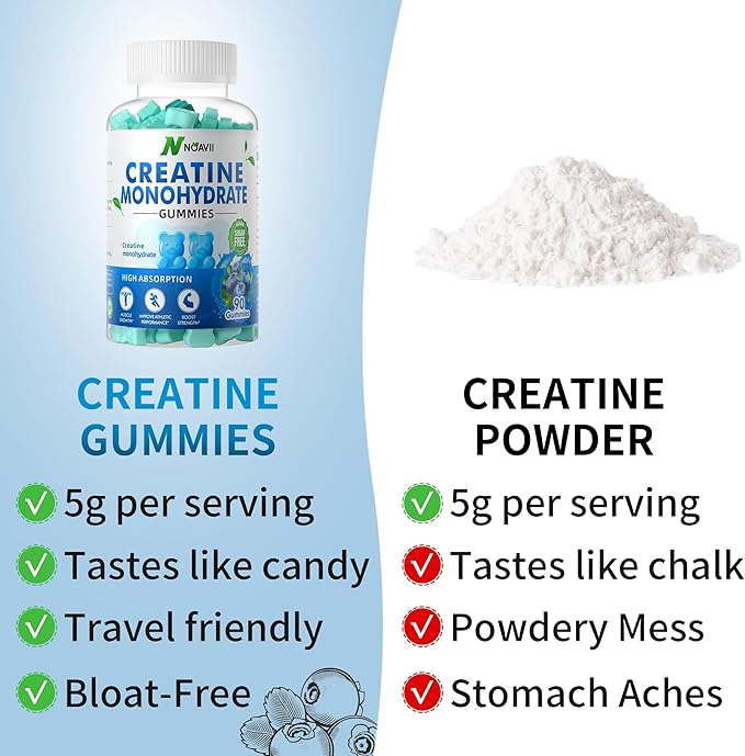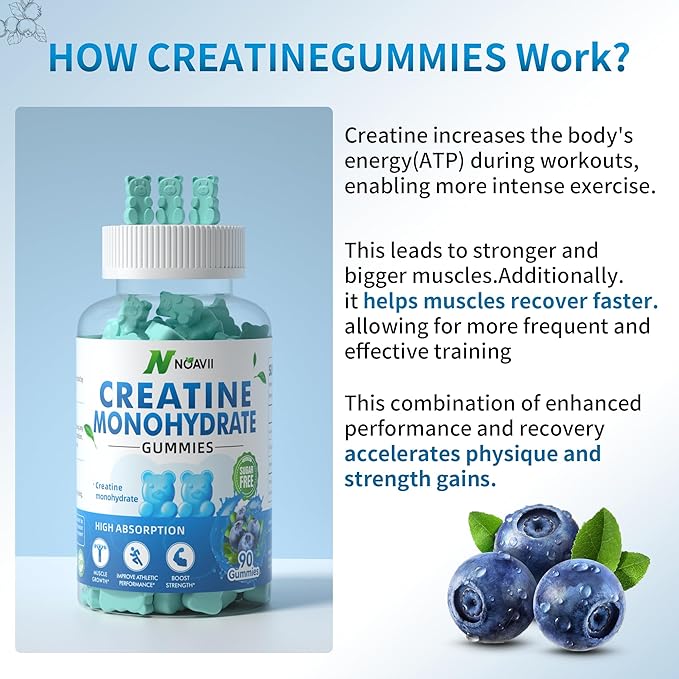 Creatine Monohydrate Gummies 5000mg for Men & Women, Chewables Creatine Monohydrate for Muscle Strength, Muscle Builder, Energy Boost, Pre-Workout Supplement(90 Count)-Blueberry