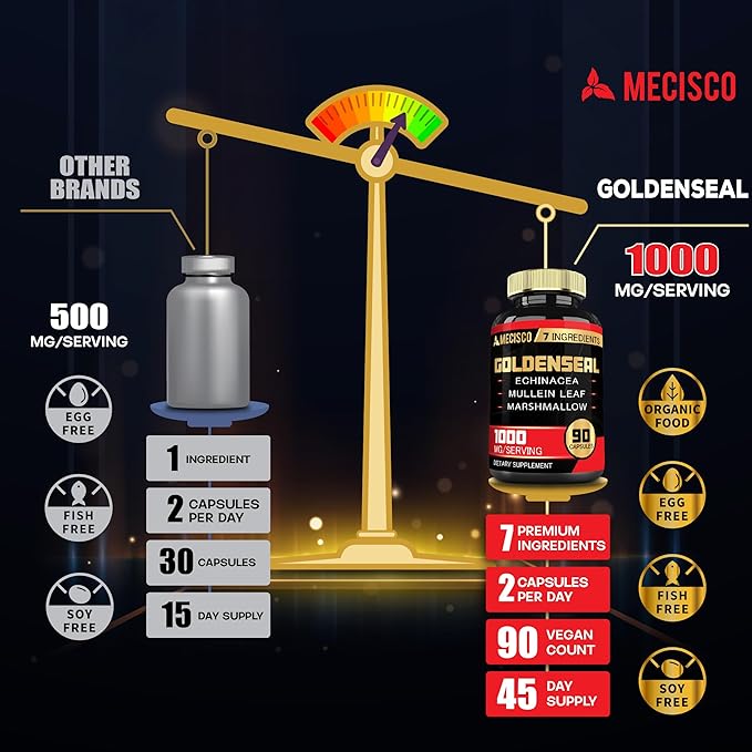 - ✔️ Outstanding Value: All Natural Mecisco Echinacea Goldenseal Supplement is sourced from a trusted & certificated facility manufacturer by strict processes to ensure international quality standards such as cGMP, ISO, FDA Registered facility & USA verified Laboratory.
