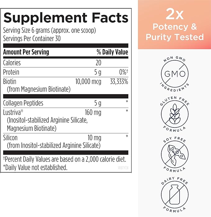 - Promote Hair Fullness & Skin Texture - Evidence suggests that Lustriva silica and biotic biotin hair support may help promote hair fullness, hair health, optimal skin texture, and nail strength.*